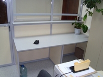 Проемы перегородки заполняются в соответствии с дизайн-проектом глухими панелями, стеклом или иными светопрозрачными материалами. Глухие панели могут изготавливаться из любого листового материала с двухсторонним декоративным покрытием, например, из ламинированного ДСП или МДФ. Для остекления используется стекло толщиной 4-5мм. Вместо стекла, особенно в изогнутых проемах, могут применяться поликарбонатные сотовые плиты или оргстекло |